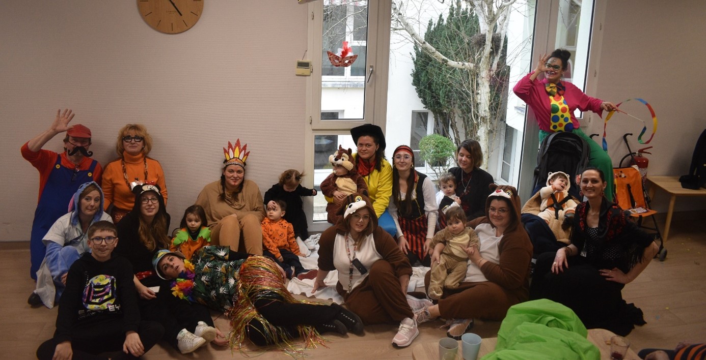 Installée dans le logement attenant à l’EHPAD, la MAM’Ti MOUN (Maison d’Assistante Maternelle) collabore avec l’équipe de l’EHPAD depuis fin 2023. Cette MAM, encadrée par Marie PATTE, accueille 12 jeunes enfants, qui viennent nous voir tous les jours. Leurs repas sont confectionnés sur place. Au plus grand bonheur de srésidnets, les enfants partage des cativités sur place 2 à 3 fois par mois. Ils sont également conviés à chaque événements festifs, comme ici sur la photo au Caranavl annuel. De tendres momenst d epartages et de compléicité sont observés, à l’occasion de ces activités ou des passages libres des enfants dans nos locaux (aire de jeux, poulailler …accesiisble àaux enfanst de la MAM).